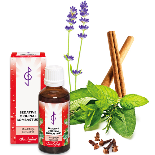 Sedative Original Bombastus® mit antibakteriellen Inhaltsstoffen aus Pflanzenextrakten und ätherischen Ölen. Die Inhaltsstoffe von Sedative Original Bombastus® beruhigen die Mundschleimhaut bei leichten Reizungen, aktivieren die körpereigene Schutzfunktion sensibler Mundschleimhaut und unterstützen ihre natürliche Regeneration.
