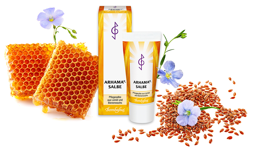 Gutes ist zumeist ganz einfach. So auch Arhama®-Salbe: Leinöl, Bienenwachs, sonst nichts. Leinöl unterstützt die Hautregeneration. Es wird aus den reifen Samen der Leinpflanze gewonnen, ist reich an mehrfach ungesättigten Fettsäuren und an Vitamin E. Die Schutz- und Pflegewirkung von Bienenwachs ist altbekannt.