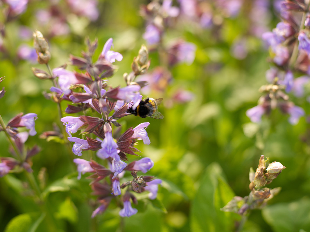 Die Salbei bevorzugt einen eher kargen Boden und stört sich dabei auch nicht an kleinen Steinen. Als zusätzlichen Nährstofflieferanten bringen wir Stroh in den Boden ein.