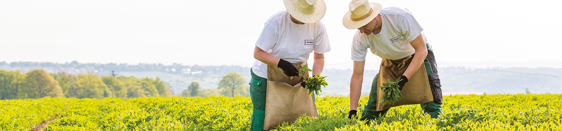 Die kleinen Salbeipflanzen sind inzwischen kräftig gewachsen. Bis zur ersten Ernte wird noch ein Jahr vergehen. Viel Aufmerksamkeit ist den jungen Pflanzen jedoch schon jetzt gewiss. Weil wir unsere Salbei unter freiem Himmel anbauen, sind die Jungpflanzen Wind und Wetter ungeschützt ausgeliefert. Mit Temperaturschwankungen im Frühjahr kommt die Salbei dennoch gut zurecht. Denn, bereits bei der Wahl des Aussaatzeitpunktes haben unsere Feldbauern ihren Erfahrungsschatz und das über mehrere Generationen weitergegebene Wissen zum Salbeianbau genutzt, um den Jungpflanzen einen unbeschadeten Start zu ermöglichen.